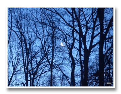 This was taken early one morning this weekend. I only had my little point and shoot camera, so the quality of the shot isn’t the best, but it isn’t terrible considering I had to prop it on the window ledge to hold steady for an 8second time exposure.