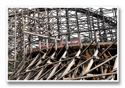 08/20/10This entry was posted in Roadside Attractions Through the lens on August 20, 2010 Well, as if the County Fair wasn’t enough, next we headed for Knoebels Amusement Park in Elysburg, PA. They have a really wicked wooden roller coaster called the Twister. I rode it… once.