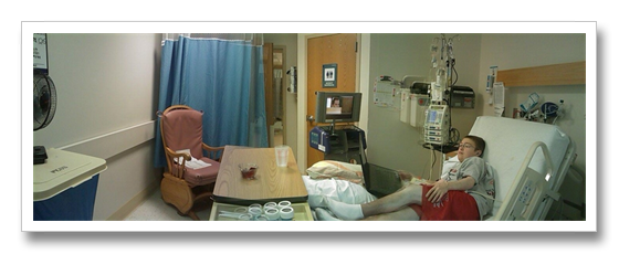 08/27/10This entry was posted in Through the lens on August 27, 2010 Here’s Ray hanging out in the hospital. Notice the fan on the left. The a/c wouldn’t work in this room and they eventually moved us, but it took a day and a half to get a new one.