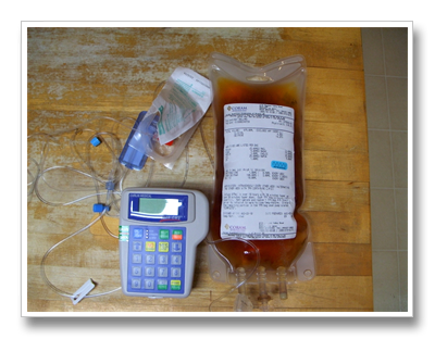 09/10/10This entry was posted in Awareness News & History Through the lens on September 10, 2010 Things we do This is Ray’s IV pump and TPN. TPN is IV nutrition. He usually gets TPN once a week to supplement his enteral (g-tube) feeds.