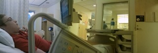 Here’s Ray hanging out in the hospital. Notice the fan on the left. The a/c wouldn’t work in this room and they eventually moved us, but it took a day and a half to get a new one.