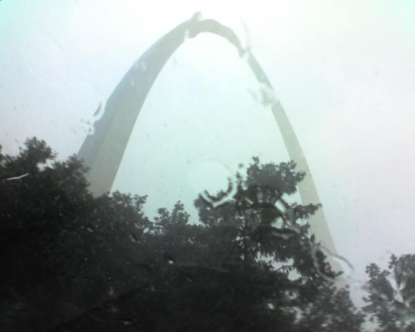 The Arch in the rainThis entry was posted in Through the lens Travel on June 28, 2007 The Arch in the rain Here’s a pic I took of the Arch in the rain as we drove into St. Louis. I wanted to post this because I took it using my phone and I wanted to test uploading a picture from my phone to the blog.