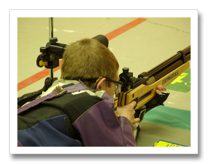 Woodson High School has a rifle team. There are actually a few schools in Fairfax County that have teams including Woodson and Robinson. Alex, Ray’s friend, has been shooting small bore for the Robinson team for a year now. Ray decided that he wanted to try to go out for rifle at Woodson, but preferred to try precision air rifle. Rifle is a winter sport, so the season actually begins now. Here’s a pic of Ray practicing in prone position. The Izaak Walton League facility helps to support the local shooters and provides range time for them.